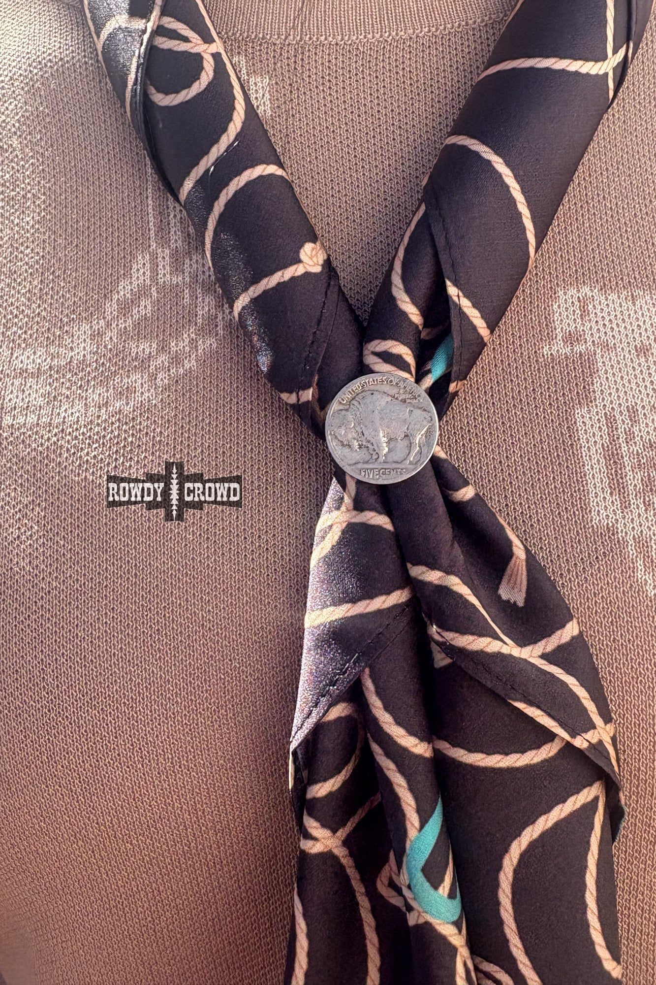 Cue the thunder! The Buffalo Thunder Scarf Slide features one bold buffalo nickel mounted on a ring, bringing vintage western grit with a little high-stakes flair. Slide it on your wild rag and let the thunder roll- no quarters required.
