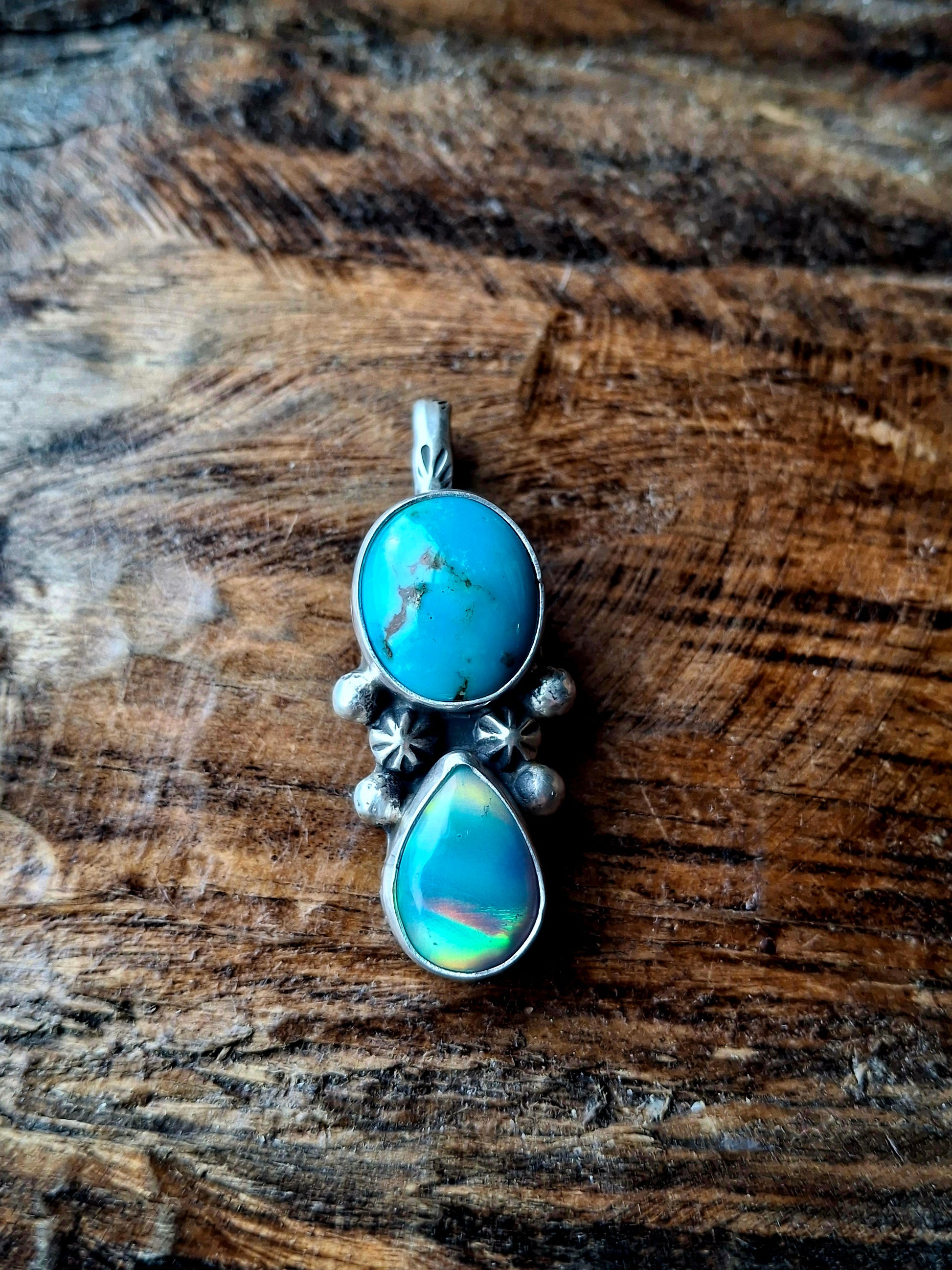 Kingman/Aurora Opal Shepherds Hook Pendant